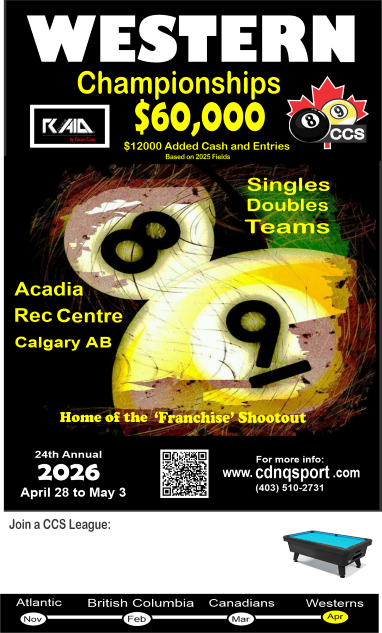 Live Streaming - On Facebook, search for 'CCS Canadian Cue Sport Association'.
